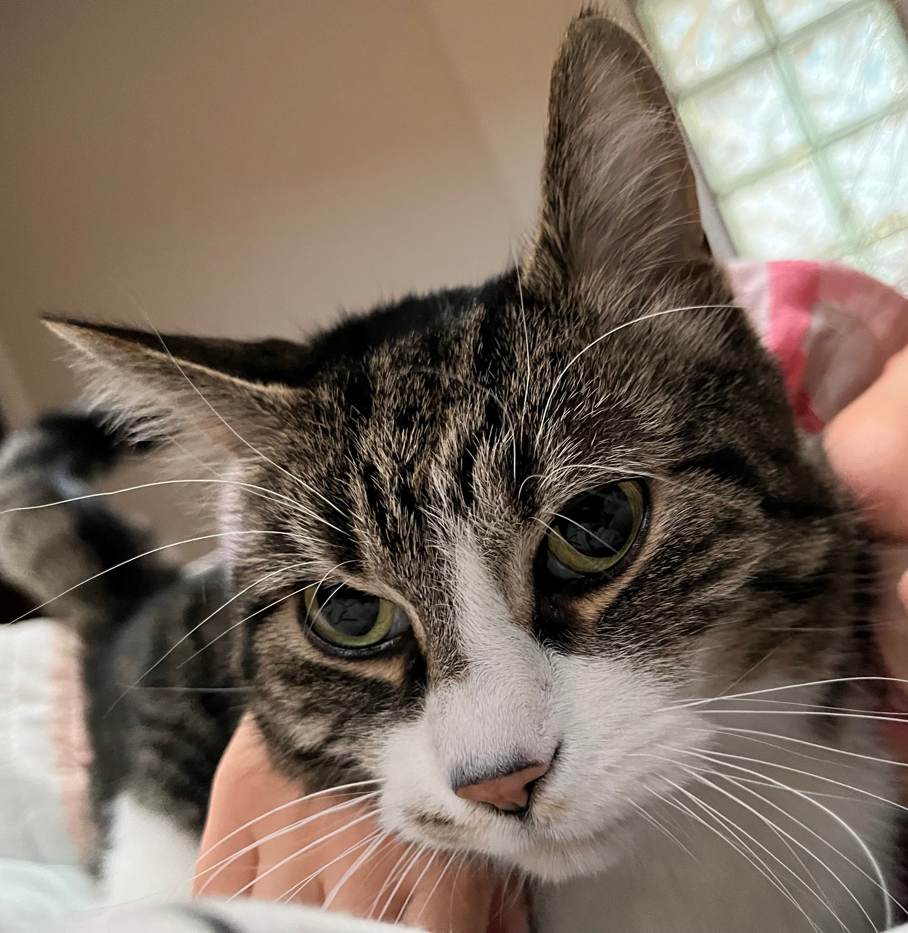 Washington was loyal and playful – he was the only cat I knew that would play fetch like a dog. At times, he could be a little anxious and literally had 9 lives, but now he is safe and sound, resting in peace. Washington passed away in May 2025.
